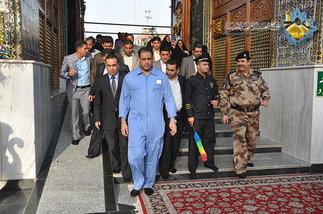 تشرف محافظ بغداد الاستاذ(علي التميمي ) والوفد المرافق له بزيارة الامامين موسى بن جعفر ومحمد بن علي الجواد(ع), وبعد اداء مراسم الزيارة والدعاء, توجه الى مقر ادارة العتبة المقدسة حيث كان في استقباله الأمين العام للعتبة الكاظمية المقدسة الدكتور(جمال الدباغ) بكل حفاوة وترحيب, وجرى الحديث مع الوفد الضيف خلال اللقاء حول اهم الجوانب الخدمية التي يمكن تقديمها لزائري الامامين الجوادين(ع) .