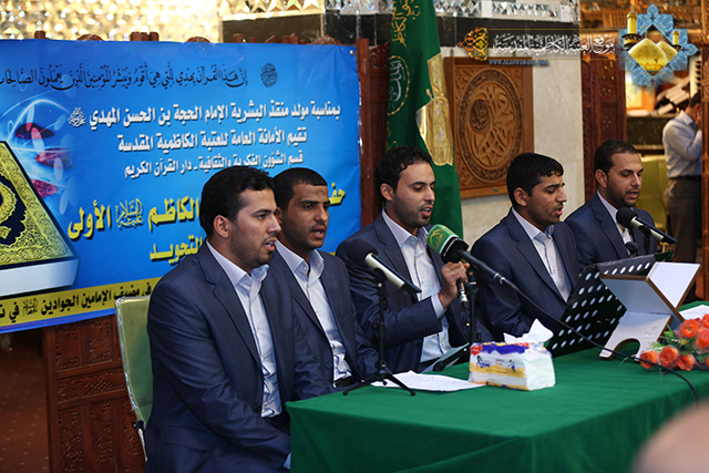 في خطوة مباركة للنهج الواضح الذي تنهجه الامانة العامة للعتبة الكاظمية المقدسة, في دعمها ورعايتها للمسيرة القرآنية المباركة من خلال تعليم شبابنا المؤمن أحكام التلاوة وتجويد القرآن الكريم وتنشئتهم نشأة إسلامية صحيحة تنسجم مع تعاليم ديننا الحنيف وأخلاق النبي الأكرم محمد (ص) وأهل بيته الأطهار (ع) وسيرتهم, وتزامناً مع افراح الولادات الشعبانية المباركة, أقامت الأمانة العامة للعتبة الكاظمية المقدسة/ قسم الشؤون الفكرية والثقافية/ دار القرآن الكريم حفل تخرج دورة الإمام الكاظم (ع) الأولى لأحكام التلاوة والتجويد, مساء يوم السبت 19 شعبان 1434هـ والموافق 29 حزيران 2013م في قاعة مضيف الإمامين الجوادين (ع), بحضور عدد من أعضاء مجلس إدارة العتبة ونخبة من الأساتذة والقراء وحفظة القرآن الكريم, حيث شارك في هذه الدورة عشرون طالباً من محافظة بغداد واستمرت لأكثر من ستة اشهر بواقع ثلاث محاضرات اسبوعياً، وسجلت نجاحاً كبيراً في إبراز العديد من الطاقات الواعدة في مجال علوم القرآن الكريم وفي ختام الحفل وزعت الشهادات التقديرية والهدايا من بركات الإمامين الجوادين على المشاركين في الدورة القرآنية.