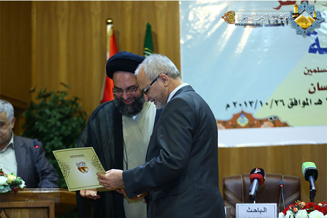 إيماناً منها بنشر فكر وتراث أئمة الهدى(عليهم السلام) الحافل بالعطاء العلمي والفكري والمعرفي, وانطلاقاً من ضرورة الفائدة من مدرسة سيد الوصيين وإمام المتقين علي بن أبي طالب(عليه السلام) الرائدة التي رفدت الساحة الإسلامية بشتى مجالات الحياة العلمية والمعرفية ولتسليط الضوء على مرحلة مهمة من مراحل الرسالة المحمدية وهي التبليغ بنبأ ولاية أمير المؤمنين علي بن أبي طالب(عليه السلام) على كل مسلم ومسلمة, عقدت الأمانة العامة للعتبة الكاظمية المقدسة ندوتها العلمية بمناسبة حلول عيد الله الأعظم عيد الغدير الأغر,صباح يوم السبت 20 ذي الحجة 1434هـ الموافق26/10/2013م وعلى قاعة الحمزة بن عبد المطلب (عليه السلام) في رحاب الصحن الكاظمي الشريف.