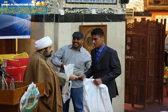 وفي ختام الحفل وزعت الهدايا على العرسان من بركات الإمامين الجوادين(ع).