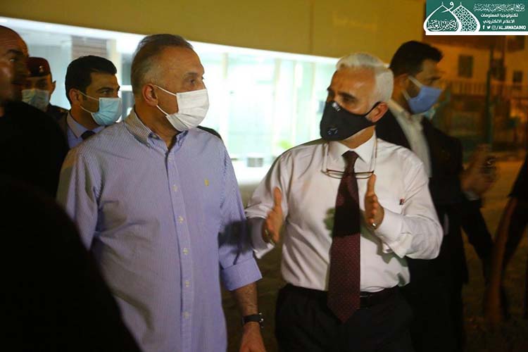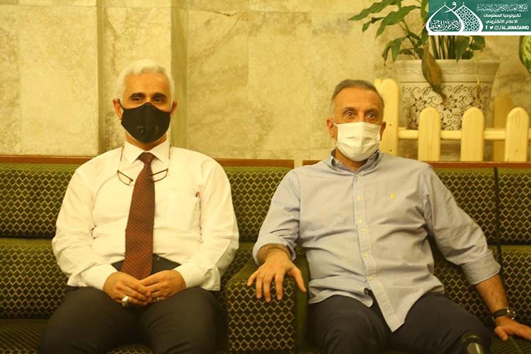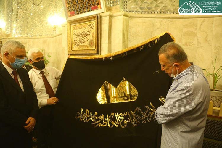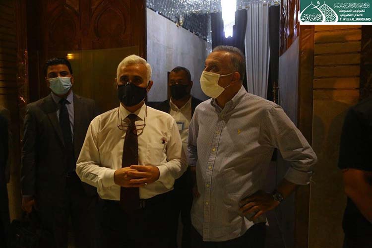 تشرّف بزيارة الإمامين الهمامين موسى بن جعفر الكاظم ومحمد بن علي الجواد "عليهما السلام" دولة رئيس مجلس الوزراء الأستاذ مصطفى الكاظمي، وكان في استقباله الأمين العام للعتبة الكاظمية المقدسة الأستاذ الدكتور حيدر حسن الشمّري، وأعضاء مجلس الإدارة الموقّر بكلّ حفاوة وترحيب وتقديم التهاني لمناسبة عيد الأضحى المبارك، وشهد اللقاء تبادل أطراف الحديث عن واقع العتبة المقدسة واستعراض الخطوات العملية للأمانة العامة للعتبة الكاظمية المقدسة على المستويين الخدمي والعمراني، فضلاً عن الإشارة إلى بعض الجوانب التي تسعى لها جاهدة في الارتقاء بمستوى الخدمة، كما وتم مناقشة الإجراءات الصحية الوقائية الواجب اتباعها حيث شددت العتبة الكاظمية المقدسة اجراءاتها الصحية الوقائية منذ المرحلة الاولى لتفشي فايروس كورونا واكدت على ضرورة تشديد تلك الاجراءات ووجوب التزام المواطنين بتعليمات وزارة الصحة حفاظاً على صحة وسلامة المواطن والمجتمع.