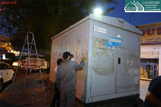 الأمانة العامة للعتبة الكاظمية المقدسة تقوم بمبادرة تغليف المحولات الكهربائية والتحذير من مخاطرها والمحافظة على الذوق العام