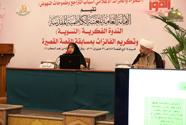 وبهذه المناسبة المباركة وبرعاية كريمة من قبل خادم الإمامين الكاظمين الجوادين، الأمين العام للعتبة الكاظمية المقدسة الدكتور حيدر حسن الشمّري، أقامت الأمانة العامة للعتبة الكاظمية المقدسة/ قسم الشؤون الفكرية والثقافية، في رواق سيدنا عبد الله بن عبد المطلب "عليه السلام" الندوة الفكرية النسوية تحت شعار: ( المرأة والحِراك الإعلامي أسباب التراجع وطموحات النهوض ) وتكريم الفائزات بمسابقة القصة القصيرة، بحضور نائب الأمين العام للعتبة الكاظمية المقدسة المهندس سعد محمد حسن، وعضو مجلس الإدارة والمُشرف على قسم الشؤون الفكرية والثقافية المهندس جلال علي محمد، ونخبة من الشخصيات العلمية والأكاديمية، وممثلي الأقسام الفكرية والثقافية والإعلامية في المؤسسات الحكومية.
