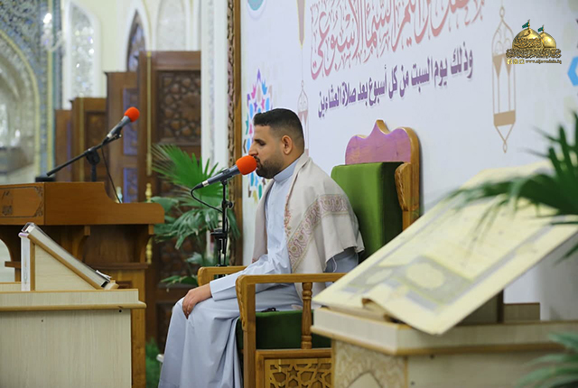 وشهد المحفل في هذا الأسبوع استضافة نخبة من قرّاء ذوي البصيرة في مؤسسة الكفيف القرآنية الثقافية وهم كلّ من: القارئ محمد عبد الشهيد من محافظة الديوانية، والقارئ قاسم صباح الحلفي من محافظة البصرة الفيحاء، حيث صدحت حناجرهم بتلاوات قرآنية مباركة تعطّرت بها أجواء الصحن الكاظمي الشريف.