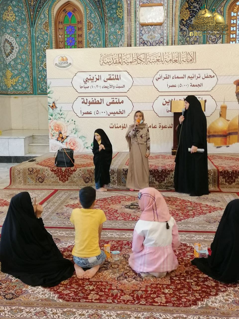 تواصل وحدة الإرشاد الديني التابعة لشعبة الشؤون النسوية في العتبة الكاظمية المقدسة إقامة نشاطات مُلتقى الطفولة الأسبوعي في رواق السيدة آمنة بنت وهب "عليها السلام"، وهي تستكمل جميع فقرات برامجه التي تنوّعت بين الدينية والثقافية والترفيهية والعلمية، حيث شهد هذا الأسبوع تعلّم القراءة الصحيحة لسورة الفاتحة المباركة، وشرح مضامين أصول الدين وتحفيظها للأطفال، وتعليمهم كيفية أداء الصلاة والضوء وغيرها من الفعاليات الأخرى.