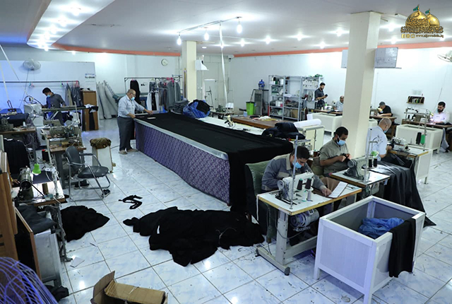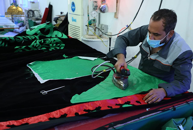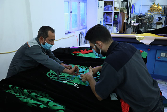 وحدة الخياطة والتطريز تنهي أعمال صناعة الرايتين السوداوتين والأوشحة واللافتات الخاصة بشهر محرم الحرام