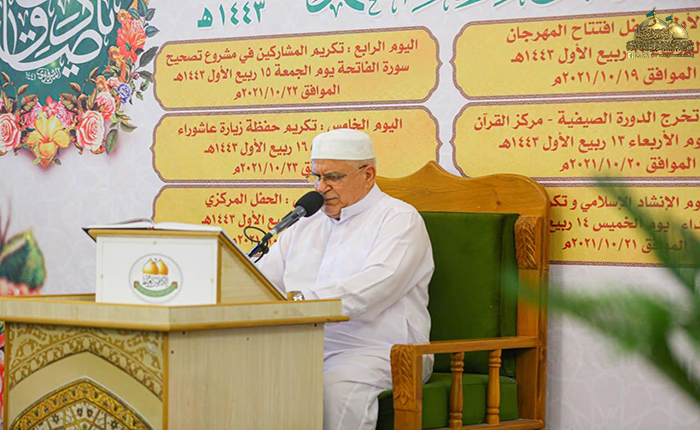 في إطار سعي الأمانة العامة للعتبة الكاظمية المقدسة متمثلة بخادم الإمامين الكاظمين الجوادين الدكتور حيدر حسن الشمّري، وأعضاء مجلس إدارته الموقّر بتفعيل روابط التواصل القرآني، وإسهامها في نشر الثقافة القرآنية من خلال تعاونها وتواصلها مع نشاطات المؤسسات القرآنية في ربوع عراقنا الحبيب، وضمن فعاليات اليوم الرابع لمهرجان ربيع الولادة الذي يُقام في العتبة الكاظمية المقدسة تحت شعار: (على صِراط أحمد)، أقام مركز القرآن الكريم التابع لقسم الشؤون الفكرية والثقافية في العتبة المقدسة وبالتعاون مع رابطة القرآنيين في محافظة واسط، حفل تكريم العاملين في المشروع القرآني الوطني في زيارة الأربعين لتصحيح قراءة سورة الفاتحة، وكوكبة من البراعم الطلبة من حفظة القرآن الكريم في محافظة واسط، بحضور نخبة من الشخصيات الدينية ومسؤولي الدور والمؤسسات القرآنية.
