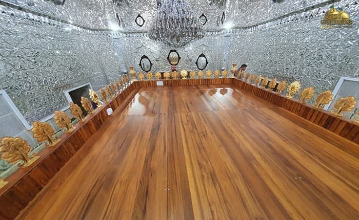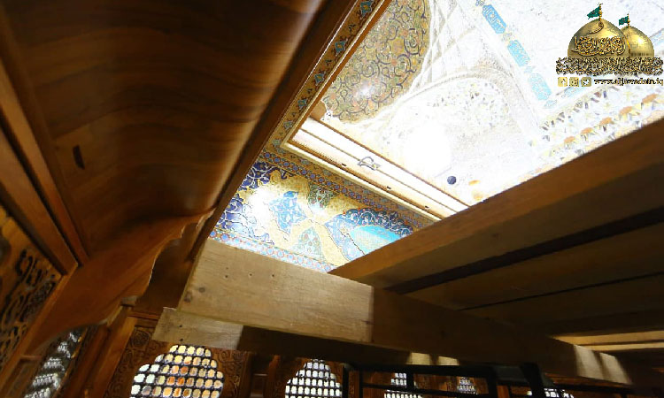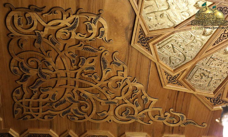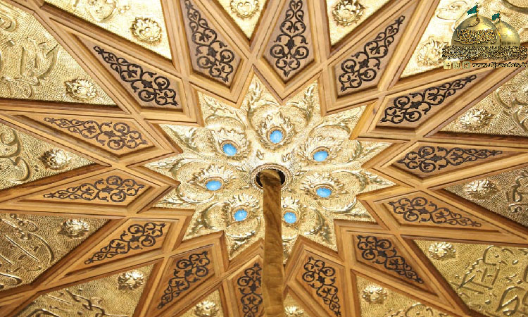 وكانت أولى مراحل العمل إزالة الخشب والنقوش القديمة والقيام بأعمال الصيانة والمعالجة الإنشائية، مع مراعاة الحفاظ على العناصر النفيسة، بعدها تم تنفيذ ونصب سقفين من قبل الملاكات الفنية في وحدة النجارة والألمنيوم باستخدام أجود أنواع الخشب "الساج"، ونقشت على كل منهما نجمة تتكون من أربعة عشرة رأساً تيمناً بالرسول الأكرم والسيدة الزهراء والأئمة الأثنى عشر من ولدها "عليهم السلام"، تتوسطهما سبع أحجار كريمة من حجر "الفيروز" دلالة للإمام السابع موسى بن جعفر الكاظم "عليه السلام".