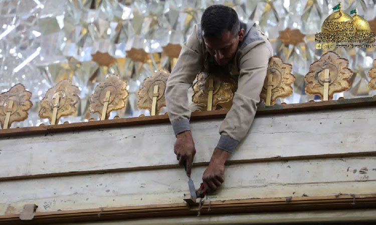 شباك ضريح الإمامين "عليهما السلام" يشهد أعمال تأهيل وصيانة سقف الضريح الطاهر