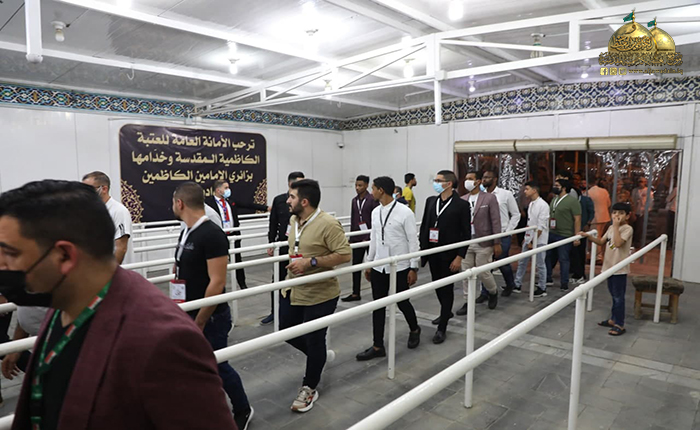 تشرّفت بزيارة الإمامين الكاظمين الجوادين "عليهما السلام " مجموعة من الوفود المشاركة في مهرجان بغداد عاصمة الشباب العربي 2021، وبعد أدائهم مراسم الزيارة والدعاء، توجهوا برفقة خدم الإمامين "عليهما السلام" من قسم العلاقات العامة إلى مشاهدة معالم العتبة الكاظمية المقدسة واستمعوا إلى شرح موجز عن التطور الذي تشهده العتبة المقدسة على الصعيد العمراني والثقافي والخدمي.