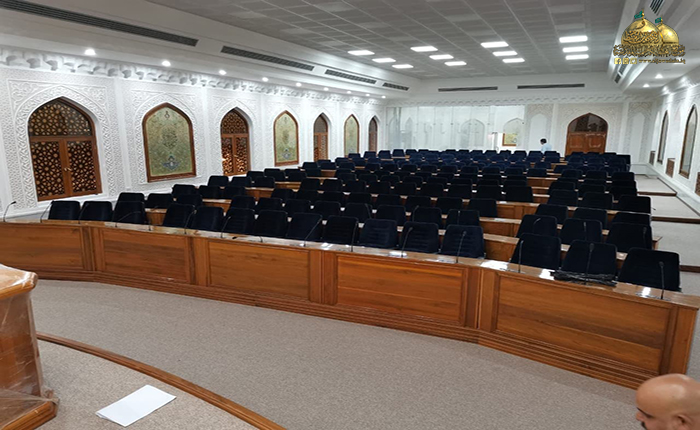 وأضاف في حديثه: إن القاعة شهدت إدامة الفضاءات الساندة ومنها الكافتيريا، والمطبخ، وقاعة الاجتماعات، فضلاً عن استحداث منظومة الترجمة الصوتية لقاعة الاجتماعات، مع إضافة شاشات عرض كبيرة ذات جودة عالية، وأيضاً تم تطوير المنظومة الصوتية والصورية، ومنظومة البث الفيديوي السابقة من قبل الملاكات الهندسية والفنية في شعبة الإعلام بالعتبة المقدسة، وانتهت الأعمال بتجديد أثاث قاعة الاجتماعات وزيادة عدد مقاعد الجلوس.