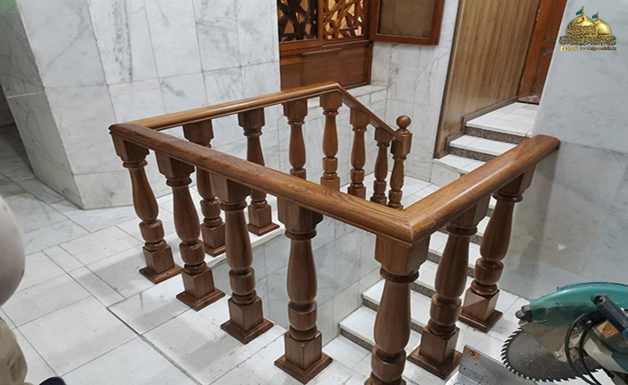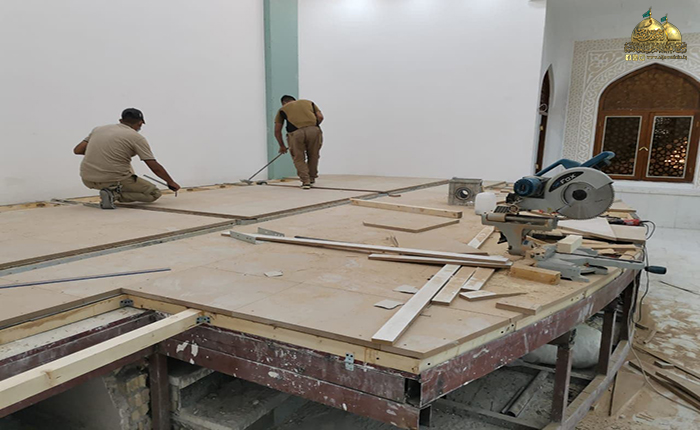 من جانب آخر تحدث مدير شعبة الهندسة الميكانيكية المهندس ضياء عبد الأمير الأنباري عن مهام الوحدات الموكلة إليهم أعمال النجارة قائلاً: جاءت أعمال الملاكات الهندسية والفنية في شعبة الهندسة الميكانيكية بالتوازي مع مهام قسم الشؤون الهندسية، حيث شرعت ملاكات وحدة النجارة والألمنيوم والنقش والزخرفة بإزالة خشب الأرضية القديمة وتجديدها بألواح جديدة، مع إضافة ممرات خاصة لتسليك المنظومات، كما تخلل العمل تأهيل كراسي القاعة وصيانتها، وكذلك تم تغيير تصميم المسرح وإضافة لمسات جديدة باستخدام أجود أنواع الخشب "الساج"، كما شهدت القاعة الرئيسة والقاعات الفرعية أعمال الديكور والزخارف الإسلامية باستخدام مادة (MDF) والحفر بـ (CNC)، فضلاً عن تأهيل المكاتب والأبواب والنوافذ والمحجرات والقواطع الزجاجية في مداخل وأروقة القاعة وإدامتها من خلال استخدام أجود أنواع دهان الطلاء، كما كانت هناك جهود كبيرة قدّمتها وحدة التبريد حيث قامت بنصب موزّعات هواء جديدة بما يتناسب مع السقف الثانوي الجديد للقاعة.