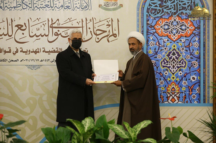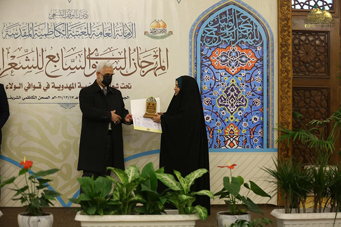 وكان مسك ختام فعاليات هذا المهرجان توزيع الدروع والشهادات التقديرية على الشعراء المشاركين، والجنة المنظمة للمهرجان والشعراء والرواد الذين خدموا في العتبة المقدسة فضلاً عن ضيف المهرجان الدكتور محمد حسين آل ياسين رئيس المجمع العلمي العراقي، وسط تطلعات الأمانة العامة للعتبة الكاظمية المقدسة بأن يكون هذا المهرجان والمهرجانات القادمة بإذنه تعالى مناسبةً لتكريس وتجذير المبادئ السامية التي دعا إليها أهل البيت "عليهم السلام" فضلاً عن توظيف الشعر العربي لنشر الأخلاق والعقائد وترسيخ الثقافة المستندة إلى لغة القرآن الكريم، وتعزيز لغة الضاد بالنتاجات الأدبية.