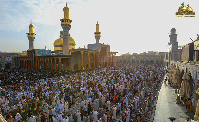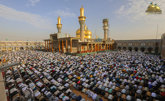 مشهد إيماني كبير احتضنته رياض الإمامة وينابيع المعاجز والكرامات رحاب الإمامين الهمامين الكاظمين الجوادين "عليهما السلام"، ومنذ ساعات الصباح الأولى ليوم الثلاثاء 1 شوال 1443 هـ الموافق 3 آيار 2022، تجلّت الفيوضات الإلهية بأروع صورها لتكون خاتمة للصيام ومكللة بالطاعات، حيث تراصّت صفوف جموع الموالين ليتضرعوا إلى بارئهم بطاعة وخشوع وإيمان وهم يؤدون صلاة عيد الفطر المبارك وزيارة الإمامين الكاظمين "عليهما السلام".