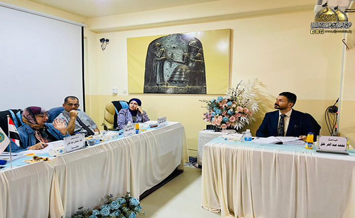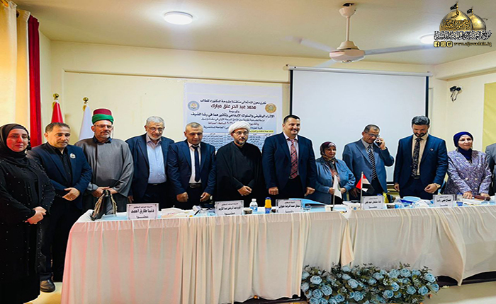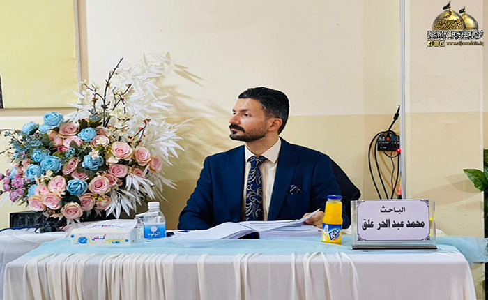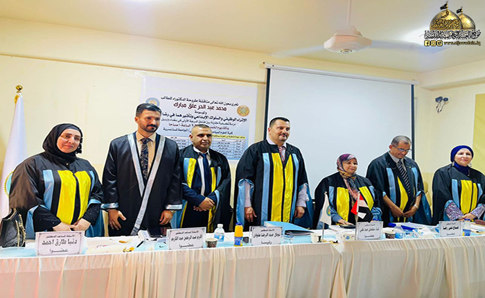 وفد العتبة الكاظمية المقدسة يحضر مناقشة رسالة الدكتوراه للخادم محمد عبد الحر