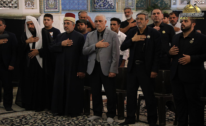 من طف كربلاء نستلهم الخلود والإباء، ونجدد الحزن والعزاء لإحياء ذكرى شهادة زين المتهجدين ودرة الصالحين الإمام علي بن الحسين "عليه السلام" في الخامس والعشرين من شهر محرم الحرام، وبرعاية مباركة من خادم الإمامين الكاظمين الجوادين الأمين العام للعتبة الكاظمية المقدسة الدكتور حيدر حسن الشمّري، أقام موكب خدّام العتبة الكاظمية المقدسة مجلسه العزائي السنوي بهذه المناسبة الأليمة في رواق سيدنا عبد الله بن عبد المطلب "عليه السلام"، استضيف فيه خادم العتبة المقدسة فضيلة الشيخ منير الكاظمي ليتحف الحضور بمحاضرة دينية قيمة تناول فيها قَبَسات من السيرة المباركة للإمام الرابع من الأئمة الهداة "عليهم السلام" إذ بيّن في بحثه الصفات التي تجلّت في شخصية الإمام السجاد "عليه السلام" وهي: " العِلم والعدالة والشجاعة"، وأشار إلى مضامين الصحيفة السجادية والأدعية الواردة فيها التي تفضي بالإنسان للوصول إلى مقاصد الإمام "عليه السلام" لنيل رضا الله تعالى والتي تعمل على تربية المؤمن من خلال أدب الدعاء والابتهال إلى الله عز وجل.