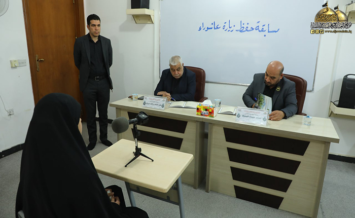 استناداً إلى توجيهات خادم الإمامين الكاظمين الجوادين، الأمين العام للعتبة الكاظمية المقدسة الاستاذ الدكتور حيدر حسن الشمّري، وتشرّفاً بحديث إمامنا جعفر الصادق "عليه السلام" في فضل زيارة عاشوراء وما لها من أهمية حين قال: ( يا صفوان كلما كانت لك حاجة عند الله توجه إليه تبارك وتعالى بقراءة هذه الزيارة والدعاء بعدها في أي مكان كنت واطلب حاجتك فإن الله لا يخلف وعده)، وترسيخاً للمفاهيم التربوية والأخلاقية في نفوس الناشئة والأجيال الفتيّة، أجرت الأمانة العامة للعتبة الكاظمية المقدسة/ قسم الشؤون الفكرية والثقافية/ مركز القرآن الكريم اختبارات لأكثر من (300) متسابق من البنين والبنات في مسابقة حفظ زيارة عاشوراء المباركة، وفق لوائح تحكيم مخصصة لتوزيع الدرجات بطريقة منصفة وتألفت اللجنة التحكيمية من: الدكتور القارئ رافع العامري، والقارئ السيد عبد الكريم قاسم، والقارئ الحاج همام عدنان، والقارئ فراس الطائي.