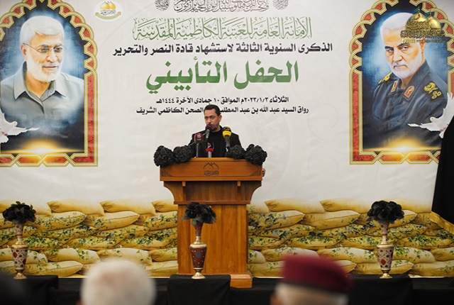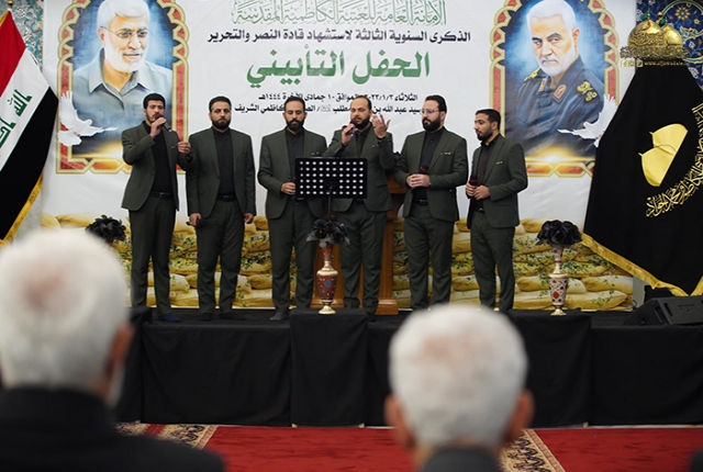 وهذا ما مضى عليه رجال العقيدة والحق وهم يسارعون لتلبية فتوى الدفاع الكفائي المقدس لتحرير أرض العراق وصون مقدساته من عصابات داعش الإجرامية، وراحوا يبذلون أرواحهم الطاهرة لتحقيق النصر المؤزر، حيث رقت أنفسهم الزكية لتعانق ذرى المجد والخلود، واستذكاراً وتخليداً لقادة هذا النصر العظيم الشهيدين السعيدين (الحاج أبو مهدي المهندس والحاج قاسم سليماني) ورفاقهم الأبرار الذين نالوا شرف الشهادة اثر الاعتداء الإجرامي الغاشم الذي تعرضوا له في مطار بغداد مطلع سنة 2020م، أقامت الأمانة العامة للعتبة الكاظمية المقدسة حفل تأبينياً كبيراً في رحاب الصحن الكاظمي الشريف بحضور الأمين العام للعتبة الكاظمية المقدسة الدكتور حيدر حسن الشمري ونخبة من الشخصيات الدينية والرسمية والاجتماعية ومجموعة من جرحى الحشد الشعبي وعوائل الشهداء فضلاً عن جمع غفير من زائري الإمامين الكاظمين (عليهما السلام).