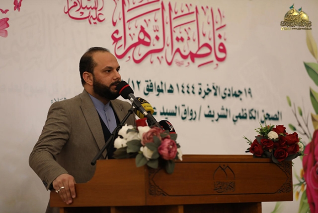 استُهل الحفل بتلاوة أيٍ من الذكر الحكيم شنّف بها أسماع الحاضرين قارئ العتبة الكاظمية المقدسة السيد عبد الكريم قاسم، بعدها كلمة الأمانة العامة للعتبة الكاظمية المقدسة وألقاها أمينها العام جاء فيها قائلاً: (لا يختلف ذوي العقول المنصفة على أن السيدة فاطمة الزهراء (عليها السلام) هي المثل الأعلى الذي قدّمته الرسالة الإلهية للمرأة، فقد صاغتها يد العناية الربانية لتكون قدوةً للحياة الكريمة، وأسوةً للفضائل والقيم الإنسانية، فهي نسخة ناطقة بتعاليم الوحي الإلهي صِدّيقة لا تفعل غير الحق، ولا تتبع سوى الهدى.. فحريّ بنا أن نقتدي بالسيدة الزهراء البتول (عليها السلام)، وأن نجعل نصب أعيننا المثل الإسلامية العليا التي تجسدت فيها عليها السلام فكراً ومنهجاً وسلوكاً.