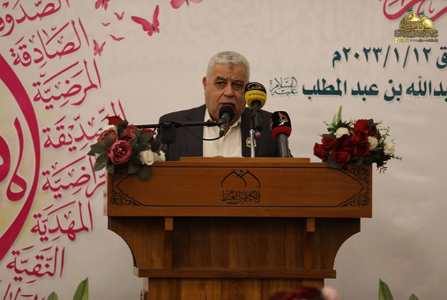 وأضاف: أن زواج الزهراء (عليها السلام) مثلاً بما فيه من تواضع المهر، وبساطة المراسيم، وسمو الخلق والمثل ومبادئ الدين على مظاهر البذخ والترف، وما يتبعه من حسن التبعّل وطيب المعاشرة مع ابن عمها الوصي المرتضى أمير المؤمنين عليه السلام وتربيتها سبطي النبي الأكرم وإمامَيِ الرحمة الحسن والحسين (عليهما السلام)، كل ذلك يعكس لنا أبعاد الرسالة الإسلامية السمحة التي رسمها الإسلام لنا صورة عن حقوق المرأة المؤمنة وواجباتها ومدى فاعليتها في الإسهام ببناء المجتمع وتطويره.. فــبَيتُ علي وفاطمة هو البيت الوحيد الذى يضم بين جدرانه زوجين معصومين مطهرين منزهين عن ارتكاب الذنوب واكتساب المآثم، ويتصفان بالفضيلة الأخلاقية والكمال الإنساني.. وكان أروع أنموذج في الصفاء والإخلاص والمودة والرحمة، تعاونا فيه بوئام وتآلف على إدارة شؤون البيت وإنجاز أعماله.. ولم تستنكف ابنة الرسول- وهي بنت أعظم رجل فى الإسلام- من العمل فى البيت بأعمال قد شقت عليها لخدمة أسرتها وقيامها بواجبها الرسالي.. فما أحوجنا ونحن نعيش في عالمٍ يغرق بالمادة وتتلاشى فيه المثل والقيم العليا أن تتعرف نساؤنا المسلمات على القدوة المثلى والأسوة الحسنة للنساء في الإسلام وأن يقتدين بسيرتها، ويستلهمن منها دروس الحياة لتربية الأجيال وتوجيهها لما فيه الصلاح والهداية، بما يسهم في بناء إنسانٍ تحيا فيه المثل الاخلاقية والعقيدة الحقّة.