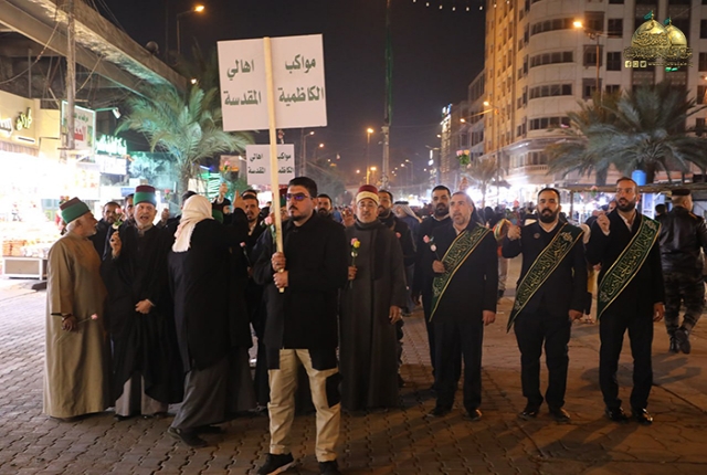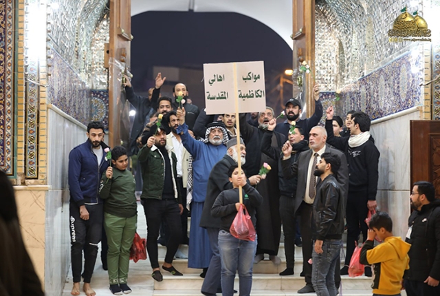 بعدها كانت هناك مشاركة لمواكب وأهالي مدينة الكاظمية بمسيرة ولائية صدحت فيها حناجرهم بالأهازيج والردات الفاطمية.