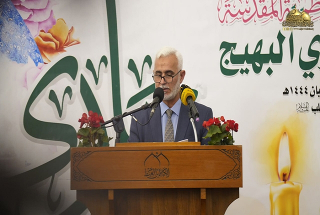وأضاف: أما المناسبة الثانية التي اجتمعنا من أجلها فما هي إلا مصداق إلى التمهيد لظهور الإمام حيث صدرت فتوى الدفاع الكفائي في الرابع عشر من شهر شعبان .. فقد وُلد من رحم هذه الفتوى أبطال وأبطال .. ضحوا بالغالي والنفيس ليسطروا أسمى معاني التضحيات في تاريخ العراق الحديث وحتما ستقف الاجيال لهم بإجلال وتعظيم لأنهم قدموا بشهادتهم ودمائهم وتضحياتهم وطنا آمنا لمن بعدهم).