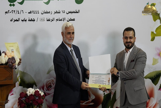 وكانت هناك مشاركة للرادود الحُسيني عمار الكناني بروائع الكلمات والأهازيج الجميلة معبّراً عن الولاء المُطلق لصاحب الذكرى الإمام المجتبى "عليهما السلام" التي أضفت روح البهجة والسرور في نفوس زائري الإمامين الجوادين "عليه السلام"، واختتم الحفل بتكريم نخبة من الأساتذة والتربويين والطلبة المتفوقين في تربية الرصافة الثالثة وذلك دعماً للمتميزين وتشجيع الكفاءات العلمية لدفع عجلة الرقيّ والتقدّم، والعمل على تعزيز روح الانتماء للعراق وهم يتطلعون إلى صناعة مستقبلهم الواعد.