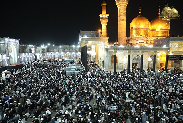 ليلة تُلزم المؤمن صلته بالكتاب الذي صدّق، وبالدين الذي آمن به، بل ليلة تجديد المؤمن ميثاقه لربّه الذي أخذه عليه في عالم الميثاق، إذ استَقبلت رحاب الصحن الكاظمي الشريف بأجوائها الإيمانية المباركة الجموع الغفيرة من زائري إمامي الرحمة والهدى الكاظمين الجوادين "عليهما السلام"، لإحياء ليلة بالغة الشرف ألا وهي ليلة الثالث والعشرين من شهر رمضان، ليلة القدر المباركة وهم يناجون ربهم بالصلاة والدعاء والاستغفار والإحسان، بعيونٍ دامعة وقلوبٍ خاشعة وأكفّ مرفوعة طالبين من بارئهم غفران الذنوب، وحُسن العاقبة، ليلتحقوا بركب النبي محمد وآل بيته الأطهار "عليهم السلام".