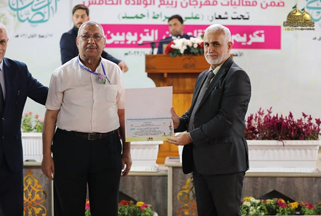 ابتهاجاً بذكرى ولادة سيد الكائنات نبينا محمد "صلّى الله عليه وآله وسلّم" وحفيده إمامنا السادس جعفر الصادق "عليه السلام"، وضمن فعاليات مهرجان ربيع الولادة الخامس المُقام تحت شعار: (على صراط أحمد)، وبرعاية مباركة من قبل الأمين العام للعتبة الكاظمية المقدسة خادم الإمامين الكاظمين الجوادين الدكتور حيدر حسن الشمّري، أقامت الأمانة العامة للعتبة الكاظمية المقدسة حفل تكريم نخبة من الأساتذة التربويين المتقاعدين في مديريات تربية بغداد الكرخ والرصافة وذلك تقديراً لجهود تلك القامات الإنسانية وعرفاناً لمسيرتهم العلمية والمهنية لما قدموه من الجهد والعطاء طيلة سنوات عملهم، بحضور عدد من المديرين العمومين، وكوكبة من الملاكات التربوية والتعليمية والإدارية.
