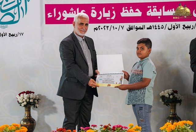 أولت العتبة الكاظمية المقدسة برعاية مباركة من قبل أمينها العام خادم الإمامين الكاظمين الجوادين الدكتور حيدر حسن الشمّري اهتماماً كبيراً برعاية الناشئين من البنين والبنات وغَرس القيم الإنسانية والمعرفية لديهم، والسعي إلى تنشئة جيل لا يحيد عن المبادئ الإسلامية نواته الأولى هو التمسك بفكر وعقيدة أهل البيت "عليهم السلام"، من خلال استثمار أوقاتهم بحفظ الأدعية والزيارات المخصوصة، وتزامناً مع فعاليات مهرجان ربيع الولادة الخامس المُقام تحت شعار: (على صِراطِ أحمدٍ)، كرّمت الأمانة العامة للعتبة الكاظمية المقدسة الفائزين في مسابقة حفظ زيارة عاشوراء المباركة التي أقامها مركز القرآن الكريم في العتبة المقدسة.