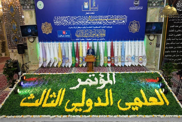 وأضاف: نحن أمّة اقرأ وورثة تراث اقرأ علينا أن نعمل بجد واجتهاد من أجل أن نكون ورثة حقيقيين لأثار اقرأ وما تتضمنه من آمال كبيرة في بناء الفرد والمجتمع وتربيتها على أسس راسخة وما هذه الساعات المباركة بين هذا الجمع المبارك إنما لأجل تجسيد تلك المبادئ العظيمة، وأن هذه المؤتمرات العلمية التي يشهدها العراق في الجامعات والعتبات المقدسة والمؤسسات إنما هي تعبير واضح وصادق على أهمية هذا المنهج في التلاقح المعرفي بين الباحثين من الجهات المختلفة من أجل خدمة العلم والمجتمع من جهة وفق المنهج البحث العلمي الرصين القائم على قواعد رصينة من جهة أخرى، وأن هذه المؤتمرات المتواصلة التي تقام في جميع العتبات المقدسة هي بارقة أمل كبير من القائمين عليها في خدمة المجتمع وفق معارف الثقل).