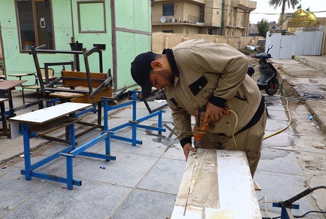 الأمانة العامة للعتبة الكاظمية المقدسة تواصل مهمتها الإنسانية وبرنامجها الخدمي في تأهيل المدارس