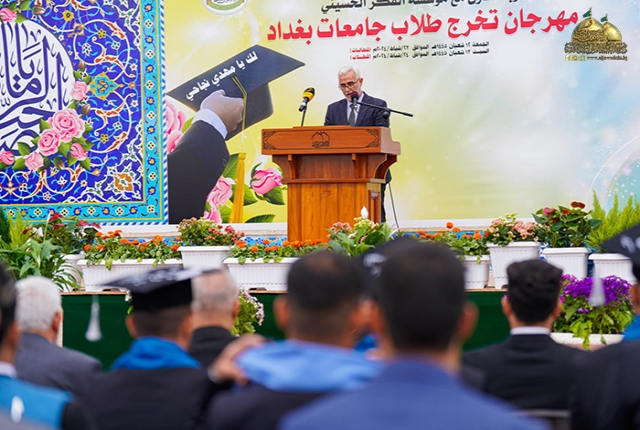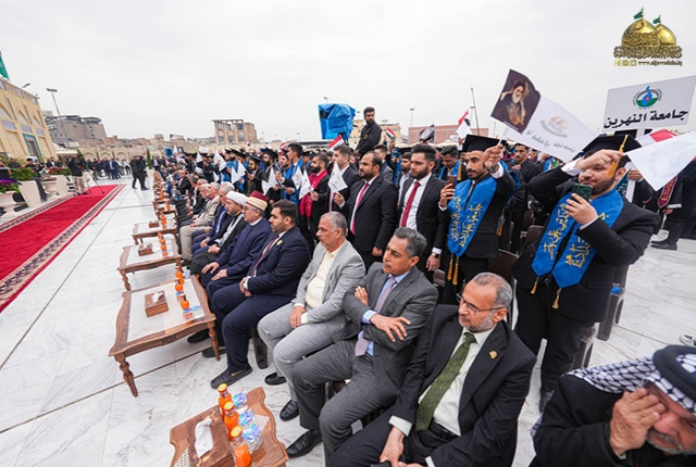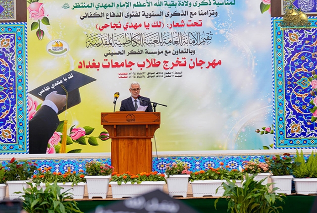 نحو بناء أملٍ جديد لركيزة من الركائز المهمة في مجتمعنا، وهي شريحة الخريجين والتطلّع نحو استثمارهم لخدمة بلدهم وشعبهم، وبرعاية من قبل الأمين العام للعتبة الكاظمية المقدسة، خادم الإمامين الكاظمين الجوادين الدكتور حيدر حسن الشمّري، تواصل الأمانة العامة للعتبة الكاظمية المقدسة وبالتعاون مع مؤسسة الفكر الحسيني إقامتها لمهرجان تخرج طلاب جامعات بغداد لليوم الثاني على التوالي تزامناً مع ذكرى ولادة قائم آل محمد المهدي المنتظر "عجل الله فرجه الشريف"، والذكرى السنوية العاشرة لانطلاق فتوى الدفاع الكفائي المباركة.