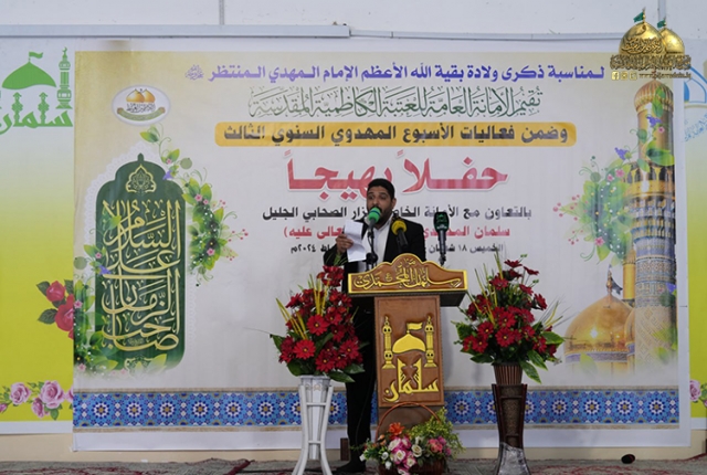 وشهد الحفل مشاركة لفرقة إنشاد الجوادين بأنشودة (عشاق المهدي)، تلتها مشاركة الشاعر الخادم هادي السلامي بقصيدة رائعة ومنها هذه الأبيات: