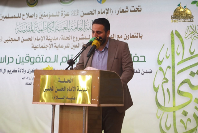 ابتهاجاً بالذكرى العطرة لولادة ثاني الكواكب المحمدية سبط النبي الأكرم "صلى الله عليه وآله وسلم" وسيد شباب أهل الجنة الإمام أبو محمد الحسن المجتبى "عليه السلام"، وبرعاية مباركة من قبل الأمين العام للعتبة الكاظمية المقدسة، خادم الإمامين الكاظمين الجوادين، الدكتور حيدر حسن الشمّري، أقامت الأمانة العامة للعتبة الكاظمية المقدسة، وبالتعاون مع الهيأة العليا لمشروع الحلة/ مدينة الإمام الحسن "عليه السلام"، ومؤسسة العين للرعاية الاجتماعية حفلاً لتكريم الأيتام المتفوقين دراسياً، ضمن فعاليات المهرجان السنوي المركزي السنوي السابع عشر لولادة كريم أهل البيت المُقام في قاعة حسينية العلّامة ابن إدريس الحلي "طاب ثراه"، وتحت شعار: (الإمام الحسن "عليه السلام" عزةٌ للمؤمنين وإصلاح المُسلمين)، بحضور نائب الأمين العام المهندس سعد محمد حسن، وعددٍ من خدام العتبة المقدسة، ونخبة من الشخصيات الدينية والاجتماعية في مدينة الحلة الفيحاء.