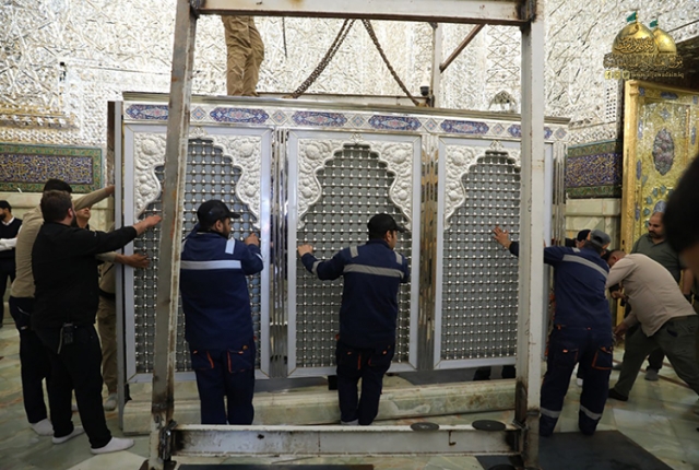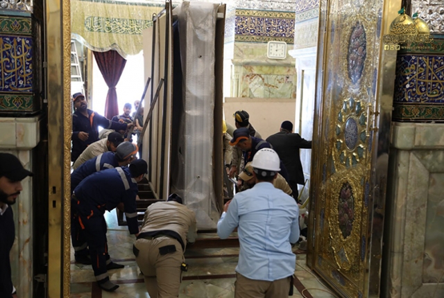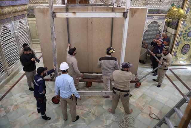 نصب وتركيب القواطع الجديدة للحرم الكاظمي الشريف