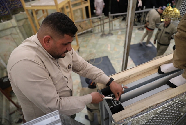 بهمّة عالية مستمَدة من منبعَي الجود والعطاء، الإمامين الكاظمين "عليهما السلام"، وبإشراف مباشر ومتابعة حثيثة من قبل الأمين العام للعتبة الكاظمية المقدسة خادم الإمامين الكاظمين الجوادين، الدكتور حيدر حسن الشمّري، قامت ملاكات قسم الشؤون الهندسية وبالتعاون مع وحدات شعبة الهندسة الميكانيكية بنصب القواطع الجديدة للضريح الطاهر لحرم الإمامين الجوادين "عليهما السلام".