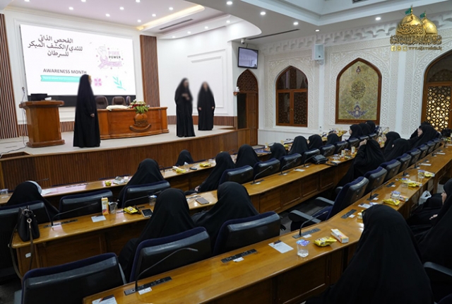 دأبت الأمانة العامة للعتبة الكاظمية المقدسة على نشر الوعي الصحي والثقافي بين الأوساط النسوية من الخادمات بغية الارتقاء بالمستوى الثقافي والمعرفي وتهيئة الأجواء الصحية الملائمة لهن، حيث أقيمت في قاعة سيدنا الحمزة بن عبد المطلب "عليه السلام" الندوة العلمية الصحية عن الكشف المبكر لسرطان الثدي، بالتنسيق مع وحدة التدريب والتأهيل في العتبة المقدسة والتعاون مع جامعة بغداد/ كلية التمريض، وألقت الدكتورة (زهراء حسين) محاضرة استعرضت فيها أهمية هذه الندوة، وأعباء هذا الداء ومخاطره، وضرورة قيام كل امرأة بهذه الفحوصات وإجراء عملية الرصد المبكر، كما بينت عدة وصايا مهمة حول سبل الوقاية من مرض سرطان الثدي والتذكير بأعراضه وأهم مسبباته وطرق علاجه والحد من انتشاره، وكشفت عن أنواع الفحوصات التي يجب على كل امرأة تجاوزت سن الأربعين إجراؤها لإنقاذ حياتها والحفاظ على صحتها لتحقيق السعادة لأسرتها والمساهمة في بناء وخدمة مجتمعها والنهوض به، وذكرت أن الفحص يكون على أنواع عدة: الفحص الذاتي، والفحص السريري، والفحص الإشعاعي، وتابعت حديثها بسلسلة من الإرشادات والنصائح العامة.