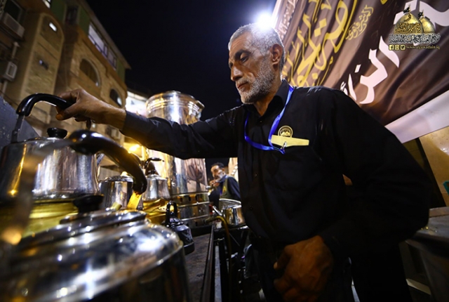 بروح ولائية موكب خدّام الإمامين الجوادين يقدم الضيافة للزائرين الكرام