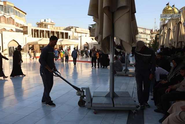 إذ أعدّت إدارة شعبة النظافة خطتها الخدمية الخاصة لهذه المناسبة الأليمة منذ وقت مبكر، ونظمت حملات خدمية واسعة قبيل استقبال موسم الزيارة المباركة من خلال تهيئة فرق النظافة وتوزيعهم وفق عملية تنظيمية، والمباشرة بتنظيف صحون حرم الإمامين الكاظمين "عليهما السلام"، وغسل السجاد وتهيئة الفرش بجميع أنواعه، وإدامة شبكات الصرف الصحي والمنشآت الخدمية ودورات المياه الثابتة والمتنقلة داخل الصحن الشريف وخارجه، وتجهيزها بأنواع المنظّفات والمعقمات ورفع النفايات ونقلها إلى الأماكن المخصصة لها.