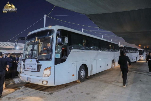بتوجيه من قبل الأمين العام للعتبة الكاظمية المقدسة خادم الإمامين الكاظمين الجوادين الدكتور حيدر حسن الشمّري على تنفيذ المرحلة الثانية من الخطة الخدمية الخاصة بموسم أربعينية الإمام الحسين "عليه السلام" وانتهاءً بذكرى رحيل النبي الأكرم محمد "صلى الله عليه وآله وسلم"، شَرَعَ قسم الآليات في العتبة المقدسة باستنفار أسطول الباصات السياحية الحديثة لتسيير الرحلات اليومية " المجانية " لنقل الزائرين والوافدين الذين أحيوا موسم الأربعين وتشرّفوا بزيارة الإمامين الكاظمين "عليهما السلام" وإيصالهم إلى المنافذ الحدودية، وتؤكد الأمانة العامة للعتبة الكاظمية المقدسة من خلال هذه المبادرة الإنسانية الكريمة على حرّصها الدائم وإسهامها في توفير أقصى درجات الراحة والخدمة للزائرين الكرام.