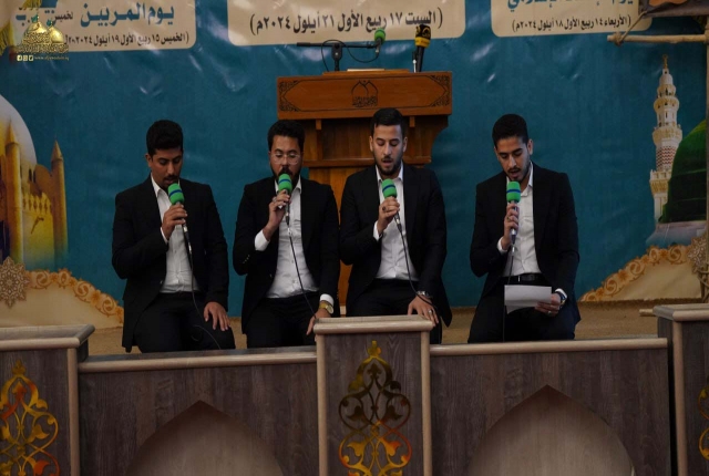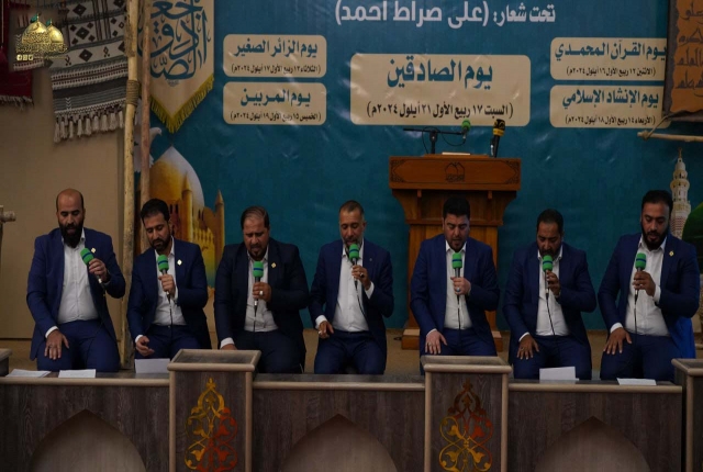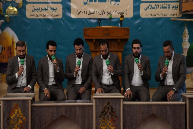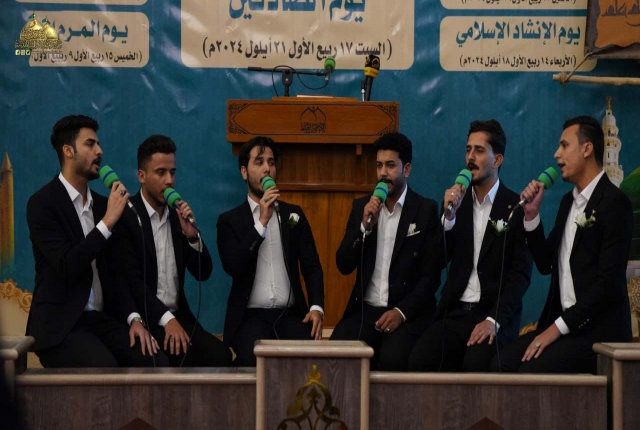 لمناسبة ذكرى ولادة خير المرسلين الصادق الأمين محمد "صلى الله عليه وآله" والتي تتزامن مع ولادة حفيده سليل الإمامة سادس أئمة الهدى جعفر بن محمد الصادق "عليه السلام"، وتواصلاً لفعاليات مهرجان ربيع الولادة السادس الذي يُقام تحت شعار: (على صِراط أحمد)، وبرعاية مباركة من قبل الأمين العام للعتبة الكاظمية المقدسة خادم الإمامين الكاظمين الجوادين الدكتور حيدر حسن الشمّري، شهدت رحاب الصحن الكاظمي الشريف، حفل يوم الإنشاد الإسلامي بنسخته الرابعة الذي يمثل رسالة محبة وسلام ونشر فكر النبي المختار واله الاطهار من خلال توظيف فن الانشاد حينما تخاطب كلماته الأرواح والأفئدة وتحلق في عالم الإبداع والجمال، بحضور كوكبة من الأصوات الشابة الواعدة في مجال الإنشاد الحُسيني، وجمع من الزائرين الكرام.
