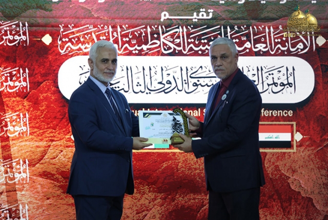 وكان مسك ختام فعاليات المؤتمر توزيع الشهادات التقديرية والدروع والهدايا على الباحثين والمؤسسات والمراكز البحثية التي يعمل فيها الباحثون المشاركون، وعلى اللجان المختلفة التي أسهمت في نجاح المؤتمر لتنتهي تلك الفعاليات بقراءة دعاء تعجيل الفرج لمولانا صاحب العصر والزمان "عجل الله فرجه الشريف".