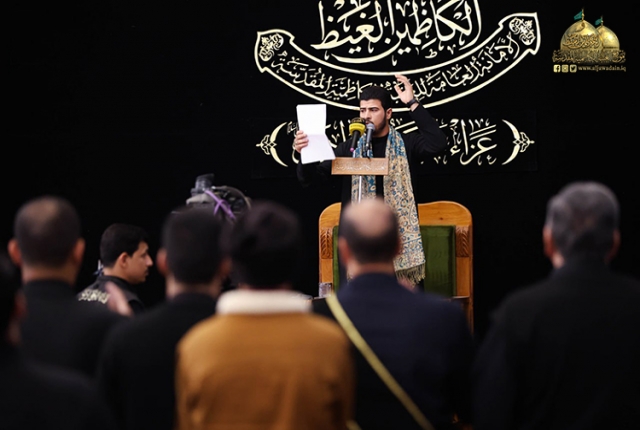 لتجديد عهد الولاء والوفاء للمحدثة العليمة السيدة فاطمة الزهراء "عليها السلام"، وبرعاية مباركة من قبل الأمين العام للعتبة الكاظمية المقدسة، خادم الإمامين الكاظمين الجوادين الدكتور حيدر حسن الشمّري، وحرصه على رفع شعار الحزن والأسى وإحياء هذه المناسبة الأليمة، تجسيداً لقول إمامنا جعفر الصادق "عليه السلام": (أحيوا أمرنا رحم الله من أحيا أمرنا)، أقام موكب خدّام الإمامين الجوادين "عليهما السلام" مجالس العزاء والتأبين الحُسيني، في رواق سيدنا عبد الله بن عبد المطلب "عليه السلام"، حيث استضاف المجلس كل من: فضيلة الشيخ عماد الكاظمي، وفضيلة الشيخ منير الكاظمي، وفضيلة الشيخ منير العامري ليتحفوا الحضور بمحاضراتهم الدينية متتبّعين خلالها المآثر والقيم الإنسانية والرسالية لسيدة الطهر والقداسة فاطمة الزهراء "عليه السلام"، ومسيرتها الكفيلة بإيصال صوت الحق والعدل الإلهي ومسؤوليتها القيادية التي استطاعت من خلالها أن تصون رسالة أبيها النبي الأكرم محمد "صلّى الله عليه وآله وسلّم".