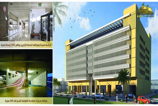 إذ تبلغ مساحته الكلية (2277م2) وبمساحة بنائية تبلغ (16000م2) بطاقة استيعابية لأكثر من (249) عجلة، ويتكون من (8) طوابق مجهزة بأحدث المنظومات والأجهزة ومن مناشئ عالمية رصينة، كما ستوفر فيه مجموعة من الخدمات منها معارض بركات الجوادين، ومضيف للزائرين الكرام، فضلاً عن مجموعات صحية عامة بواقع (102) وحدة مع ملحقاتها.