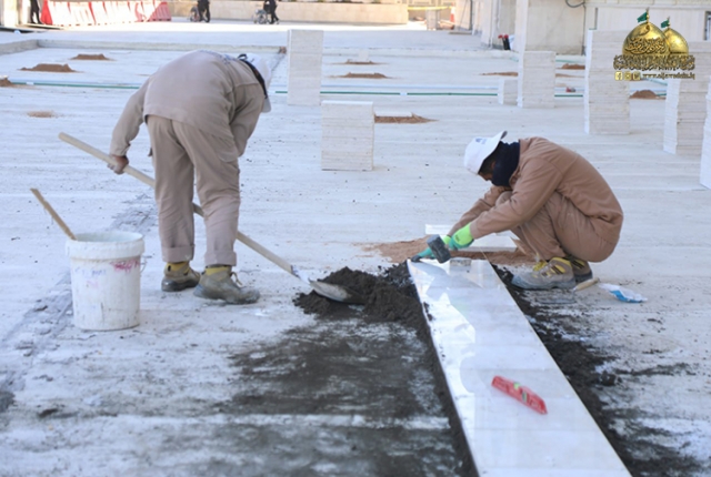 في إطار الجهود والمساعي المباركة لتطوير العتبة الكاظمية المقدسة، شرعت الملاكات الهندسية والفنية في العتبة المقدسة وبإشراف ومتابعة حثيثة من قبل الأمين العام للعتبة الكاظمية المقدسة، خادم الإمامين الكاظمين الجوادين الدكتور حيدر حسن الشمّري، بمرحلة تطوير وإكساء أرضية صحن الإمامين الحسنين "عليهما السلام" بالمرمر وبمساحة تقدر (9830م2) وفق التصاميم المعمارية المُعدّة للمشروع، في الوقت الذي يبذل فيه العاملون المزيد من الجهود لإنجاز تلك الأعمال وفق الجداول الزمنية والمواصفات التنفيذية.