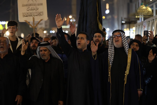 وشارك تلك الجموع موكب خدّام الإمامين الجوادين "عليهما السلام" بعدها تجمهرت المواكب المعزّية في رحاب الصحن الكاظمي الشريف، وكان في استقبالهم أعضاء مجلس إدارة العتبة الكاظمية المقدسة الموقر، لتختتم مسيرتها بمجلس تأبيني مستذكرين خلاله مآثرها "عليها السلام" وأبعاد مسيرتها الإنسانية والإيمانية والرسالية والاجتماعية، ودورها الكبير في حياة الأمة وتضحياتها بالغالي والنفيس وجهادها المرير، ومواقفها الصلبة في الحفاظ على مفهوم المسيرة الحسينية، ثم ابتهل المعزّون إلى الله العليّ القدير بالدعاء بتعجيل فرج مولانا القائم من آل محمد "عجل الله فرجه الشريف"، وأن يرحم شهداءنا، وأن يعم الأمن والأمان على بلدنا العزيز وشعبنا الأبي الصابر.