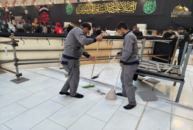 كما شهد البرنامج الخدمي أعمالاً عدّة منها: فرش الصحون الشريف والفضاءات العبادية، وتهيئة كميات كبيرة من الأقداح البلاستيكة ذات الاستخدام لمرة واحدة، وإدامة شبكات الصرف الصحي والمنشآت الخدمية ودورات المياه داخل الصحن الشريف وخارجه ومنها الحمامات المتنقلة وعلى مدار الساعة، وتجهيزها بأنواع المنظّفات والمعقمات والمطهرات، وتنظيف الشوارع المحيطة بالصحن الكاظمي الشريف، فضلاً عن الجهد الخدمي لدعم وإسناد الأقسام الأخرى، وتعزيز تلك الجهود بمعدات التنظيف الآلي المتطورة سعياً لتوفير أفضل الخدمات للزائرين الكرام.