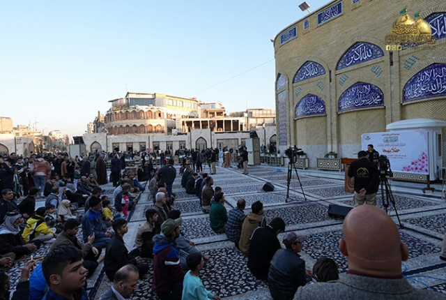 وسط غمرة الأفراح التي تعيشها أمتنا الإسلامية بحلول شهر شعبان المعظّم، وذكرى ولادة ابن بنت الرسول وسيد شباب أهل الجنة الإمام أبي عبد الله الحسين "عليه السلام"، وبرعاية مباركة من الأمين العام للعتبة الكاظمية المقدسة، خادم الإمامين الكاظمين الجوادين الدكتور حيدر حسن الشمّري، شهدت رحاب صحن الإمام الرضا في العتبة الكاظمية المقدسة حفلاً جماهيرياً بهيجاً، بعرافة الخادم الشاعر هادي هلال السلامي، استهل بتلاوة من الذكر الحكيم عطر بها أسماع الحاضرين القارئ الخادم باقر أحمد سهر، بعدها مشاركة إنشادية للخادم علي نجم الكناني، والمنشد حسن رشل الخفاجي، ترنمت بالحب والولاء والوفاء لصاحب الذكرى سيد الشهداء الإمام الحسين "عليه السلام"، لإضفاء الفرح والبهجة في نفوس الحاضرين الموالين من زائري الإمامين الكاظمين الجوادين "عليهما السلام".