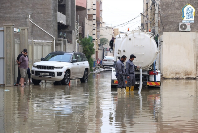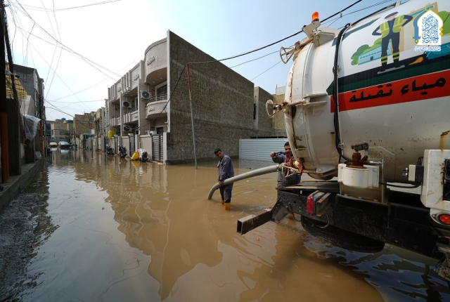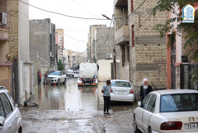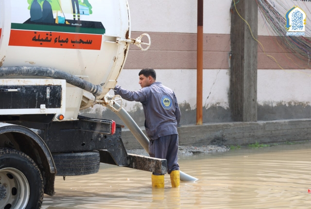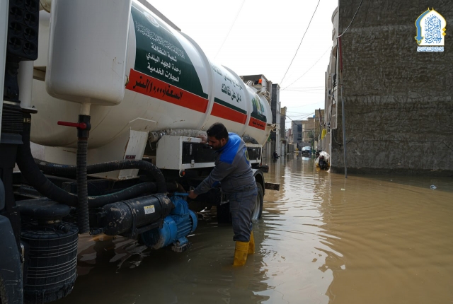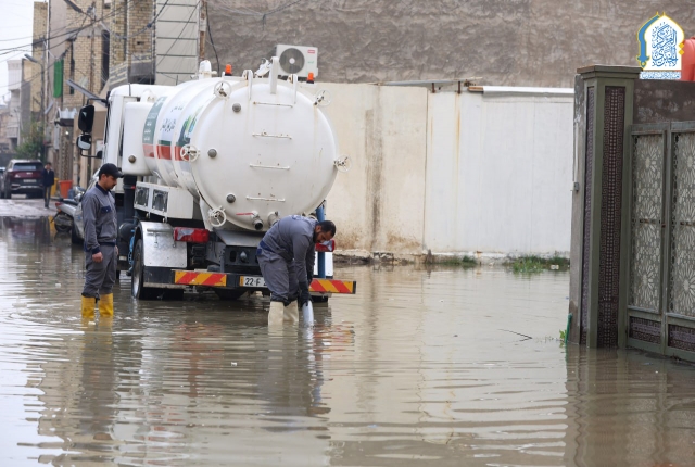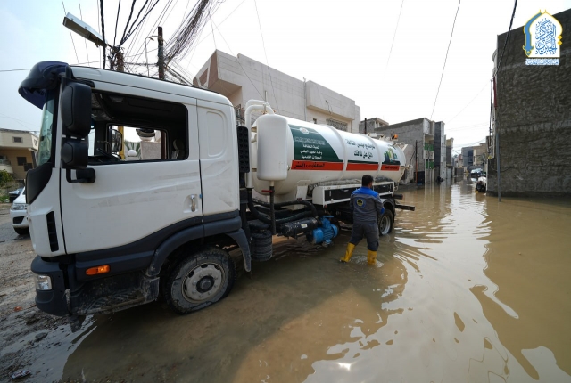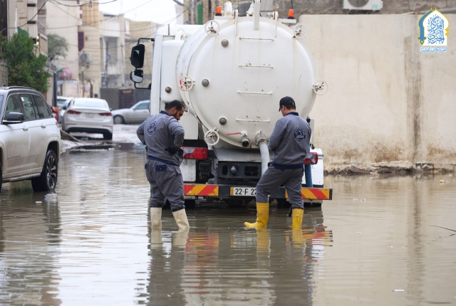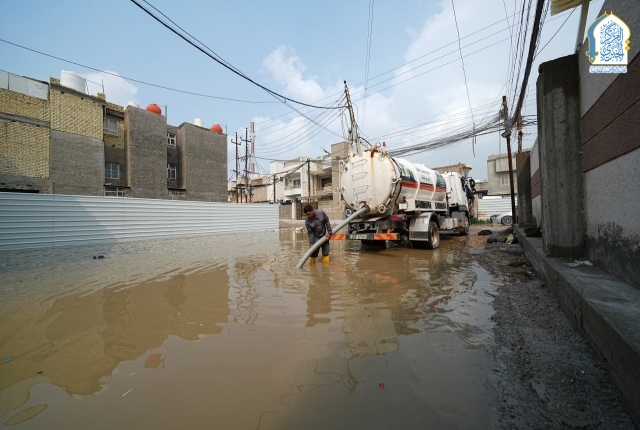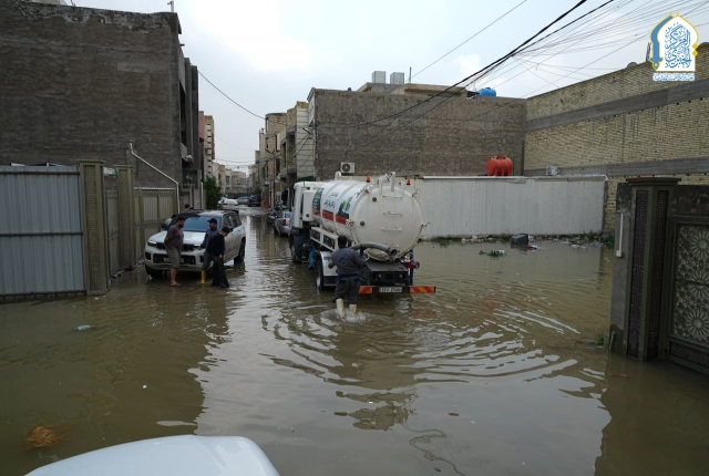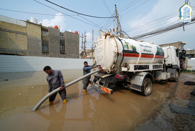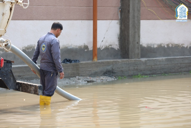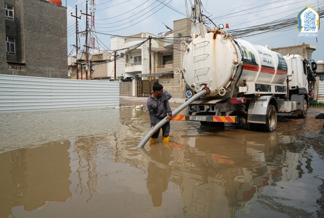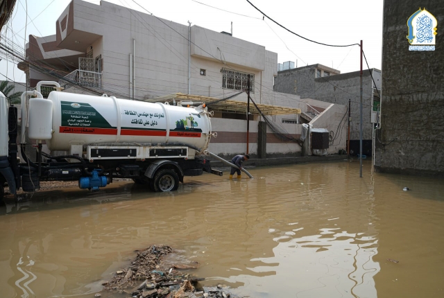 بتوجيه من قبل الأمين العام للعتبة الكاظمية المقدسة، خادم الإمامين الكاظمين الجوادين الدكتور حيدر حسن الشمري، واستجابته لمناشدات أهالي وسكان منطقة الكاظمية المقدسة والمناطق المحيطة بها، نفذت تشكيلات وحدة الجهد البلدي التابعة لشعبة النظافة في قسم خدمة الزائرين في العتبة الكاظمية المقدسة حملة ميدانية لسحب مياه الأمطار من المناطق المتاثرة ومنها: منطقة شاطئ التاجي، ومنطقة ركية وفاضل، وشارع مستشفى مدينة الإمامين الكاظمين الطبية، وساحة العروبة، بالإضافة للأحياء والأزقة الأخرى، من خلال استنفار اسطولها من العجلات والحوضيات التخصصية، والإسهام في تخفيف معاناة المواطنين، وإسناد أعمال وجهود دوائر البلدية وأمانة بغداد بعد تعرض البلاد إلى موجة من الأمطار الغزيرة.